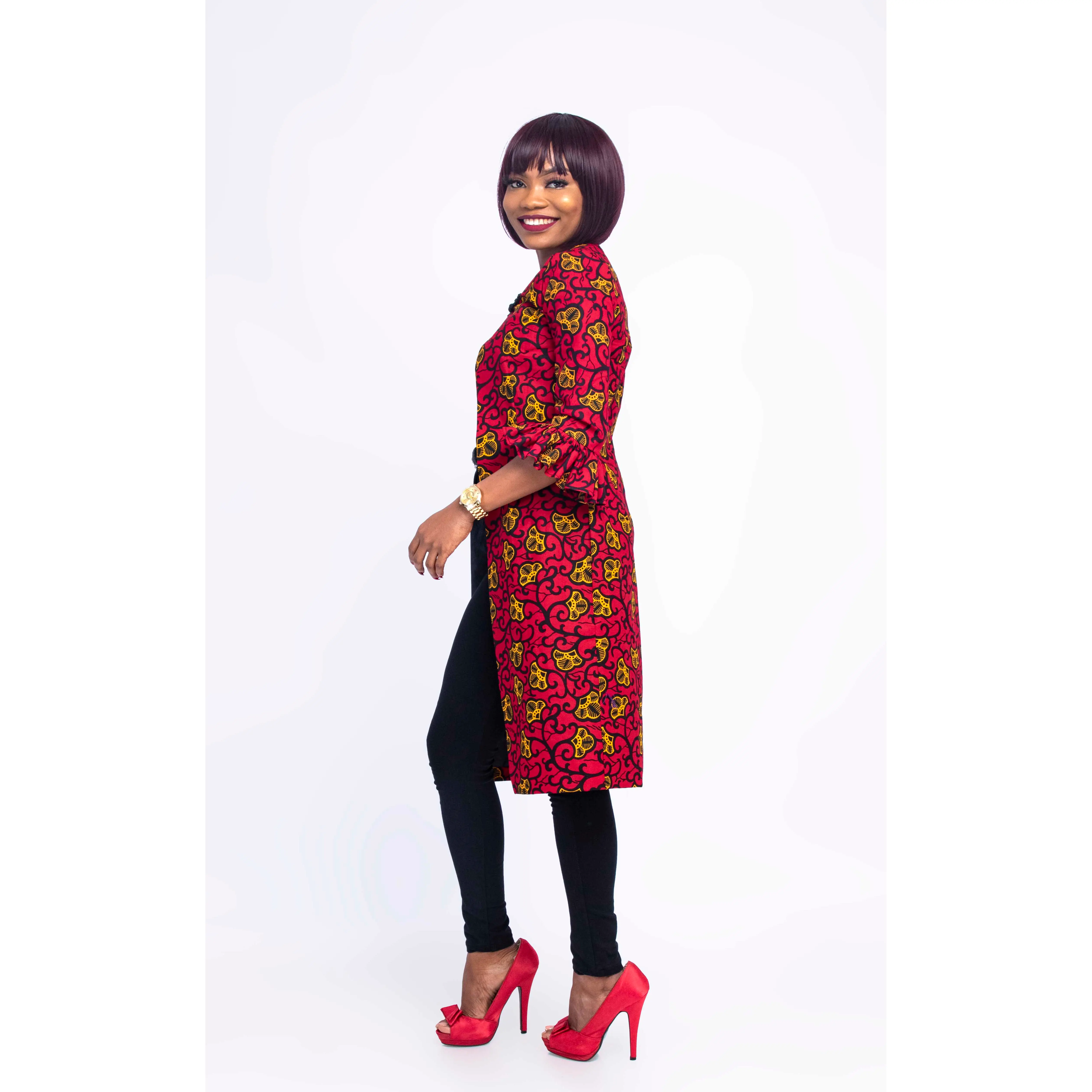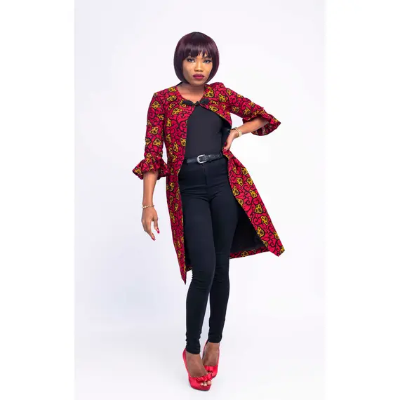 It can be worn for every occasion. It’s trendy and stylish with a lovely sleeve and button at top center front. You can pair with a pant, leggings or pencil dress. Ify Coat let your look speak classy.