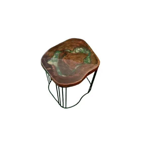 Bring the tranquility of nature into your home with the Verdant Stream Table. This artisanal side table features an organic, live-edge wood top enhanced by vibrant green epoxy that meanders like a lush stream across the surface. Supported by a sleek black metal base, it’s both a functional piece and a captivating work of art. Perfect as an accent table in your living room or a unique nightstand, this design celebrates the harmony of raw timber and modern resin artistry.