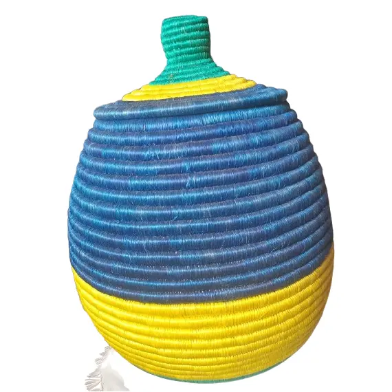 This flag-themed artisan basket is a bold and elegant tribute to Rwanda, woven in the national colors: blue, yellow, and green. It’s a premium decorative piece that serves as a beautiful symbol of patriotism, unity, and culture. Ideal for offices, cultural spaces, or as a standout gift.