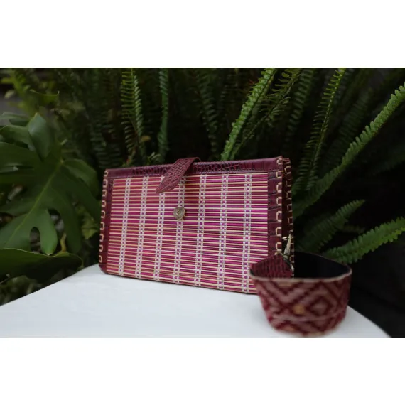 This is an elegant, authentic, and classic bag of premium quality. The main body is made of a well polished bamboo mat high quality Ethiopian leather, and The inner part has cotton lining with one pocket.